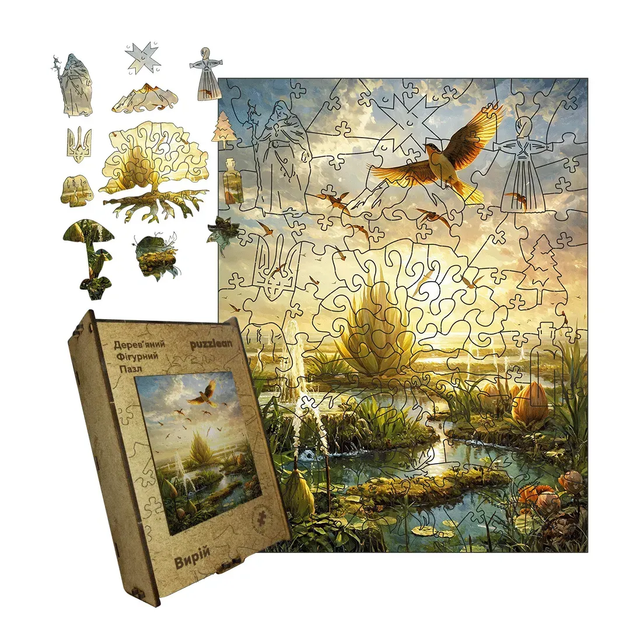 Дерев'яний фігурний пазл Вирій, А1, Дерев'яна коробка 500+ елементів