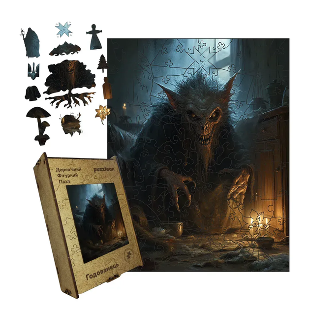 Дерев'яний фігурний пазл Годованець, А1, Дерев'яна коробка 500+ елементів
