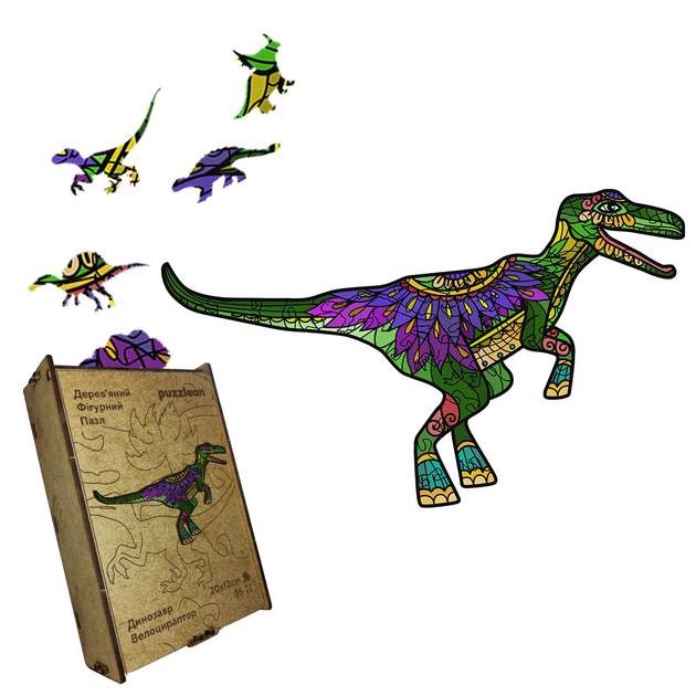 Пазл дерев'яний Динозавр Велоцираптор, А1, Дерев'яна коробка 500+ елементів