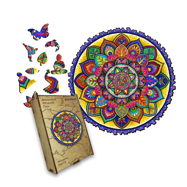 Пазл дерев'яний Мандала Щастя, А1, Дерев'яна коробка 500+ елементів