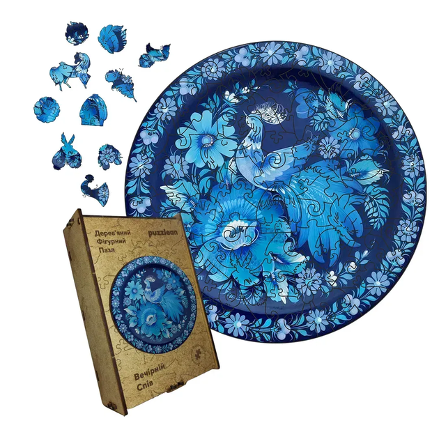 Дерев'яний фігурний пазл Петриківський Вечірній Спів Ганни Олійник, А1, Дерев'яна коробка 500+ елементів