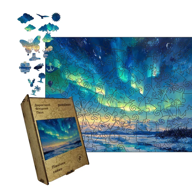 Дерев'яний фігурний пазл Північне Сяйво, А1, Дерев'яна коробка 500+ елементів