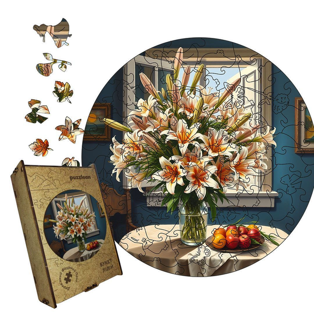 Пазл дерев'яний Букет Лілій, А1, 500+ елементів, Дерев’яна коробка