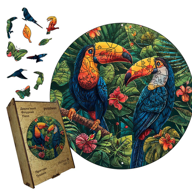 Пазл дерев'яний Пригоди Туканів, А1, 500+ елементів, Дерев’яна коробка