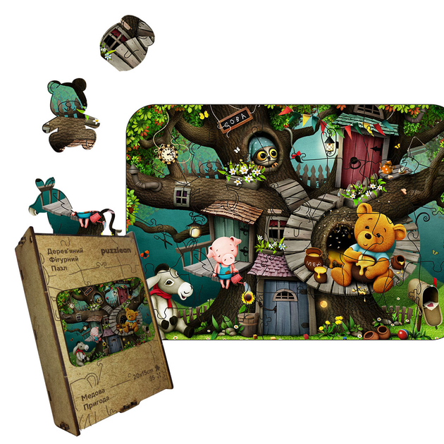 Пазл дерев'яний Медова Пригода, А1, Дерев'яна коробка 500+ елементів