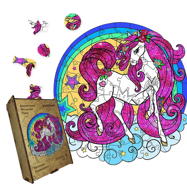Пазл дерев'яний Веселка Єдинорога, А1, Дерев'яна коробка 500+ елементів
