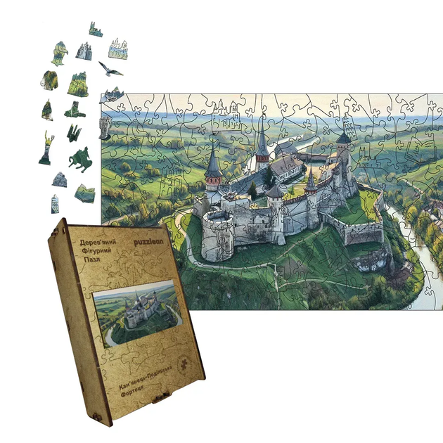Дерев'яний фігурний пазл Кам'янець-Подільський, А1, Дерев'яна коробка 500+ елементів