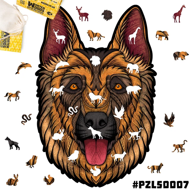 Деревяний фігурний пазл Вівчарка від WortexPuzzle 20x30 см 66 шт