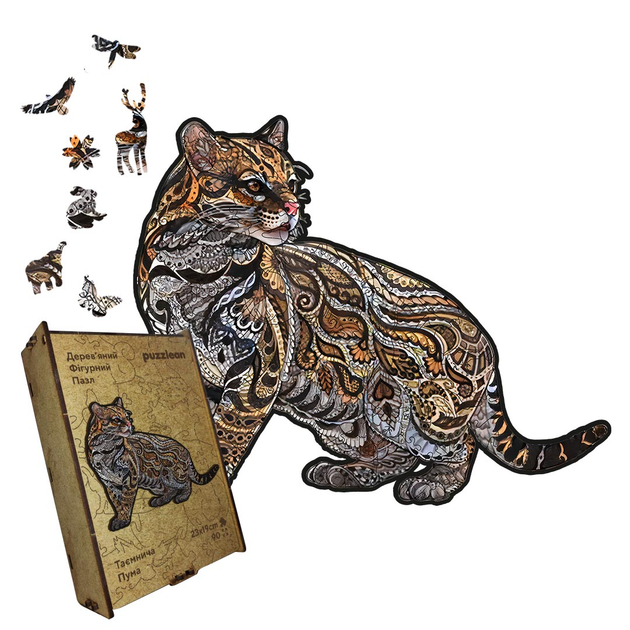Пазл дерев'яний Таємнича Пума, А1, Дерев'яна коробка 500+ елементів