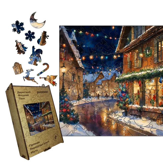 Пазл дерев'яний Гірлянди Нічного Міста, А1, Дерев'яна коробка 500+ елементів