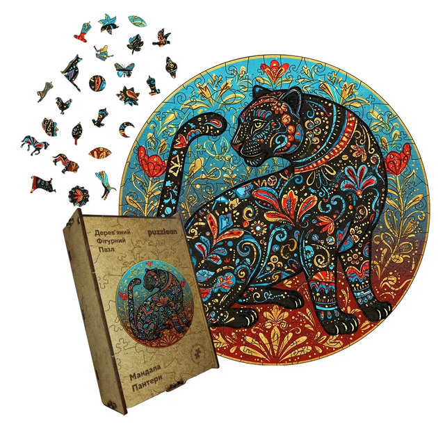 Дерев'яний фігурний пазл Мандала Пантери, А1, Дерев'яна коробка 500+ елементів