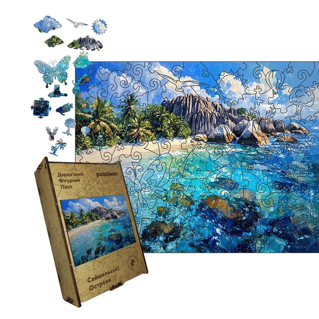 Дерев'яний фігурний пазл Сейшельські Острови, А1, Дерев'яна коробка 500+ елементів