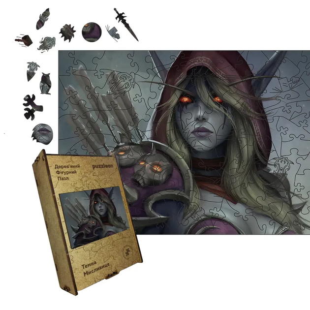 Дерев'яний фігурний пазл Темна Мисливиця, А1, Дерев'яна коробка 500+ елементів