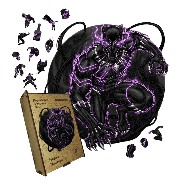 Дерев'яний фігурний пазл Чорна Пантера, А1, Дерев'яна коробка 500+ елементів