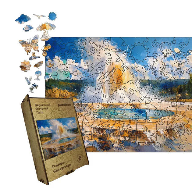 Дерев'яний фігурний пазл Гейзери Єллоустоуна, А1, Дерев'яна коробка 500+ елементів