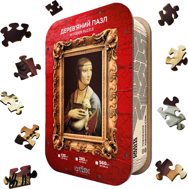 Дерев’яний пазл THEGRAVIX Пані з горностаєм Леонардо да Вінчі М 42 x 28 см 285 елементів (04214-1)