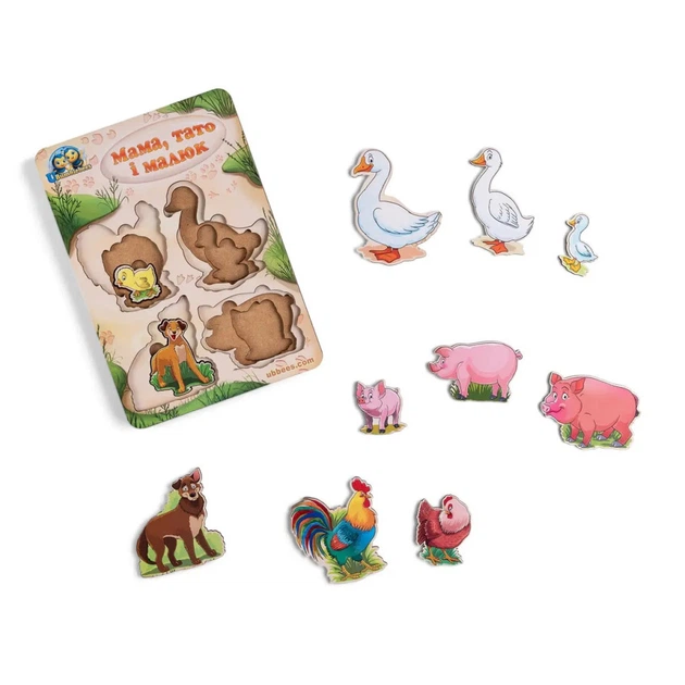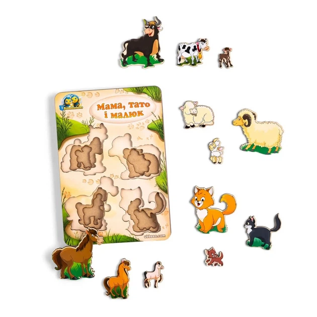 Дерев'яний пазл-вкладиш "Сім'я-свійські тварини-2" Ubumblebees (ПСФ003) PSF003 більше-менше
