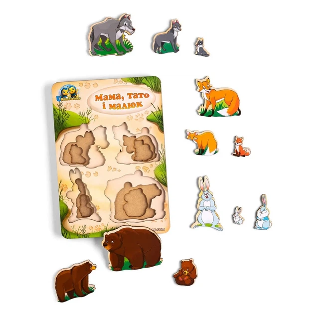 Дерев'яний пазл-вкладиш "Сім'я-дикі тварини" Ubumblebees (ПСД078) PSD078 більше-менше
