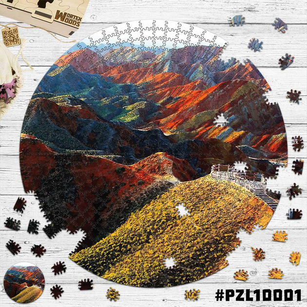 Дерев'яні пазли Кольорові скелі Чжан'є Данксіа 50х50см Розмір L у подарунковій дерев'яній коробці PZL10001-L-box