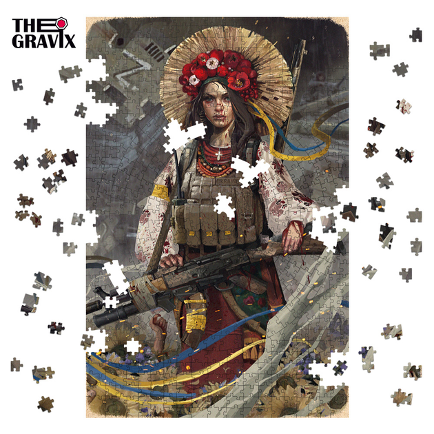 Дерев'яний Пазл "Українка з Автоматом" - Прямокутник 87 х 57 см - 630 шт