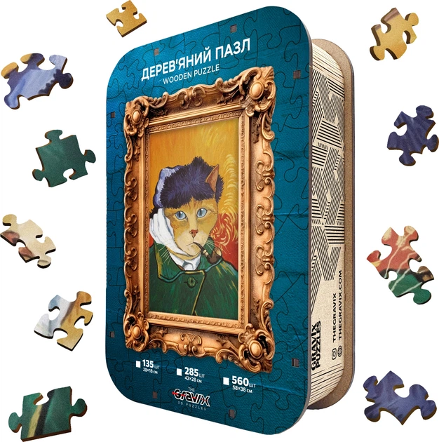 Дерев’яний пазл THEGRAVIX Автопортрет кота в стилі Ван Гога L 58 x 38 см 560 елементів (04268-1)