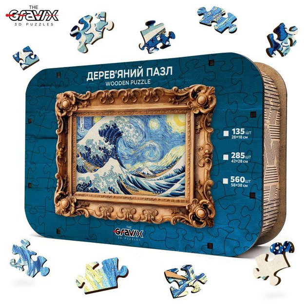 Дерев’яний Пазл The Gravix “Велика хвиля зоряної ночі”, розмір 880х580 мм, 1300 деталей