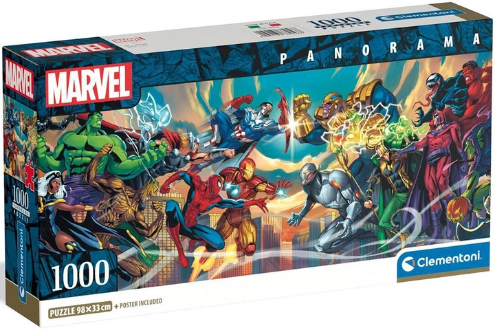 Пазли Clementoni Compact Panorama - Марвел. Герої проти лиходіїв / Disney Marvel / 1000 елементів (37056)