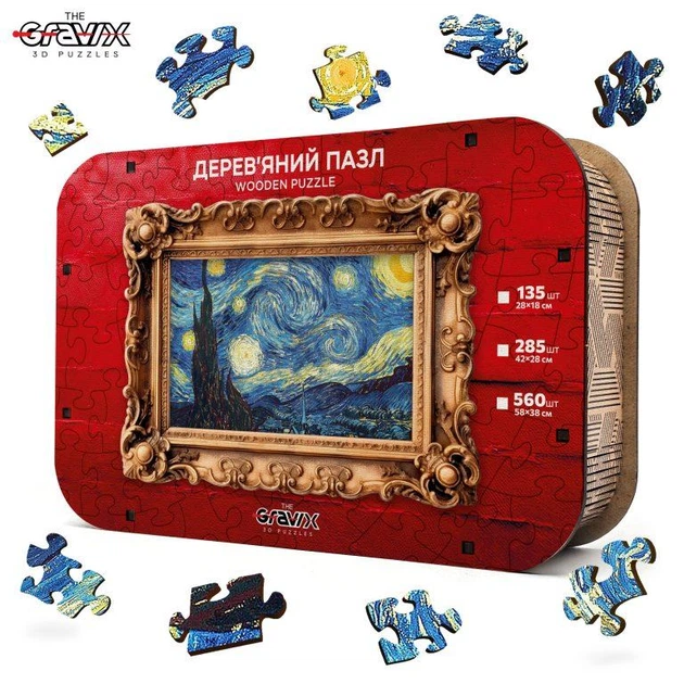 Дерев’яний Пазл The Gravix “Зоряна ніч” Ван Гога, розмір 420х280 мм, 285 деталей