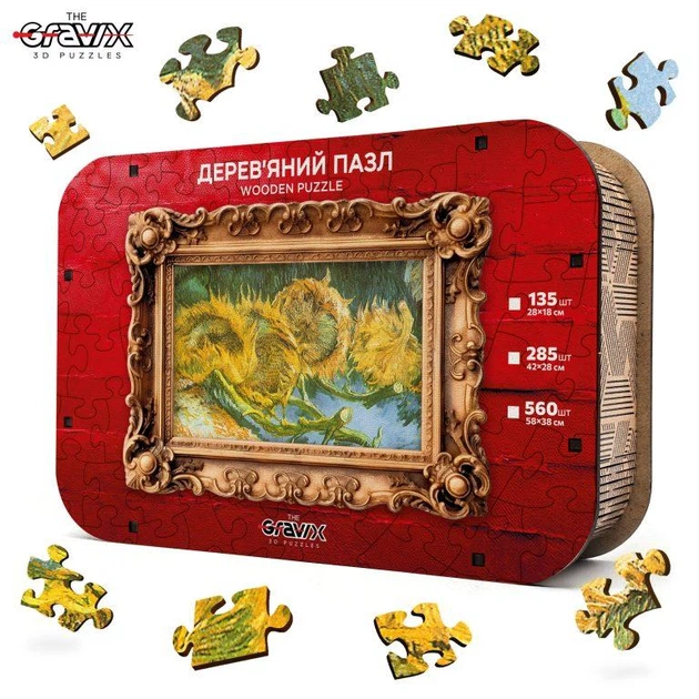 Дерев’яний Пазл The Gravix “Чотири зів’ялих соняшника” Ван Гога, розмір 420х280 мм, 285 деталей