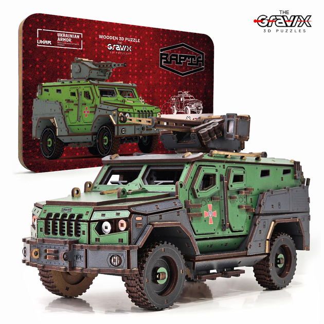Дерев’яний 3D Конструктор “Військовий Тягач” 475 деталей 35 см (04486) THEGRAVIX