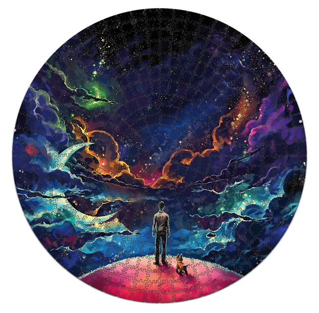 Круглий дерев'яний пазл 40х40 см Wortex Woods Космічний краєвид 316 елементів нестандартної форми PZL20006M