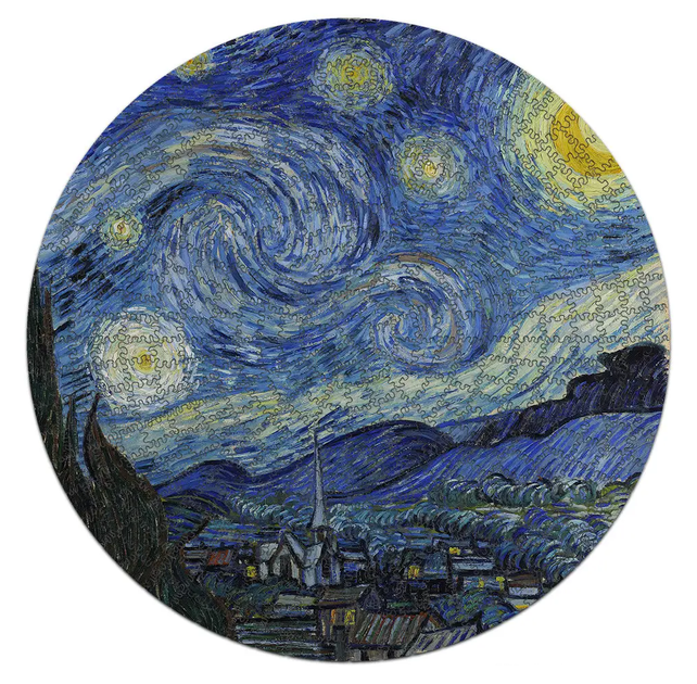Круглий дерев'яний пазл 40х40 см Wortex Woods Зіркова ніч 316 елементів нестандартної форми PZL30002M