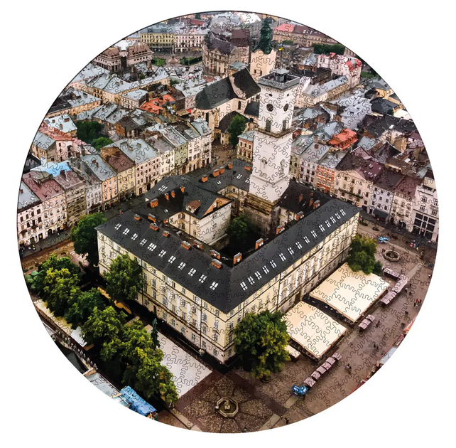 Круглий дерев'яний пазл 40х40 см Wortex Woods Площа Ринок у Львові 316 елементів нестандартної форми PZL81008M