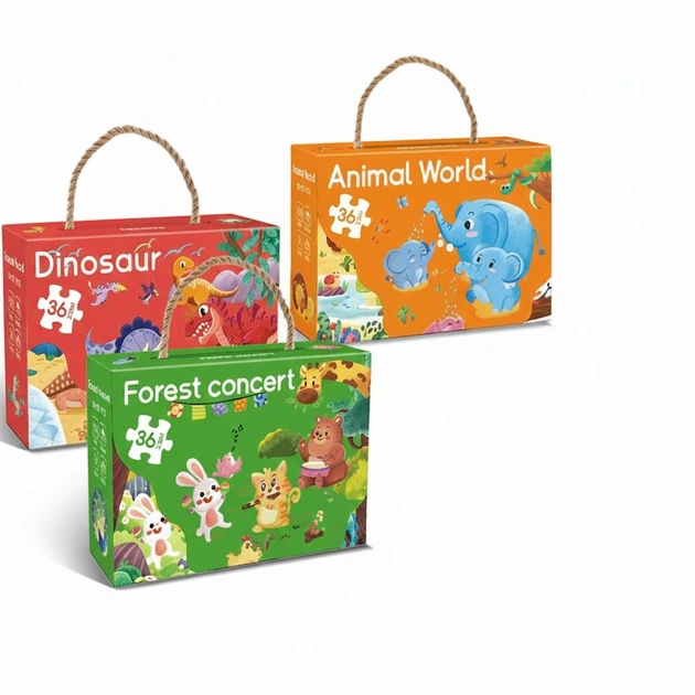 Дитячий набір великих пазлів 36 елементів у подарунковій коробці з ручкою