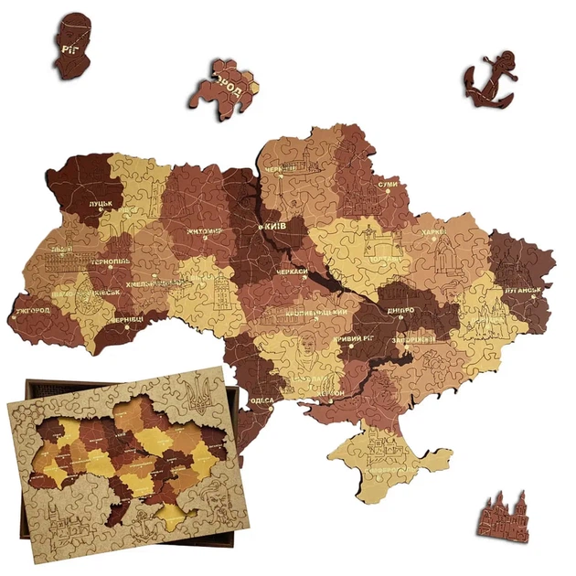 Пазл дерев'яний Карта України (капучіно) Woods Story 41х28см 190 деталей WSUA0085