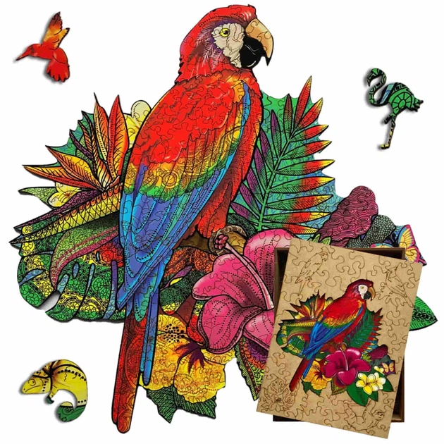 Пазл дерев'яний Тропічний Ара Woods Story 38х38см 220 деталей WSUA0082