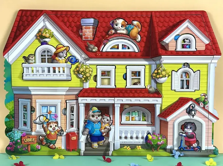 Дерев’яний пазл-вкладиш Котячий літній будинок, ПСД272