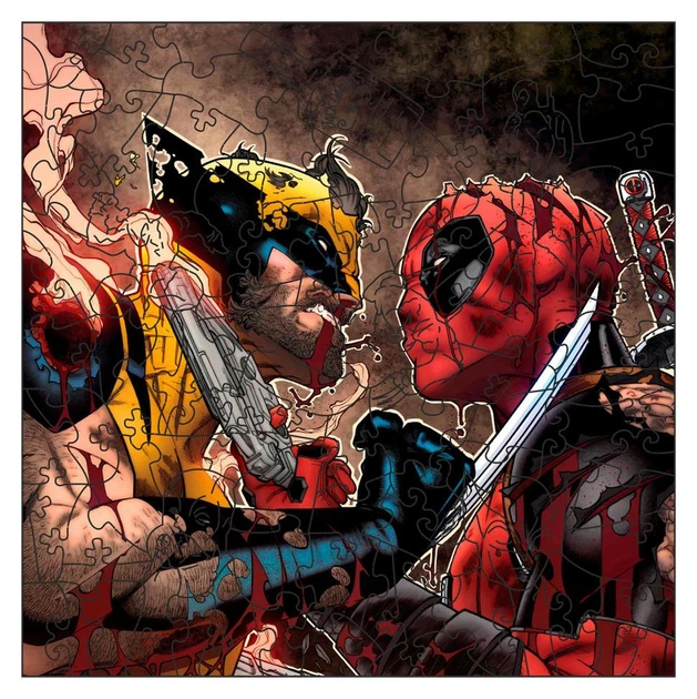 Фігурний пазл з дерева "Дедпул та Росомаха" PZ002-A3W-AC 180-250 деталей, А3 з мішечком та стрічкою