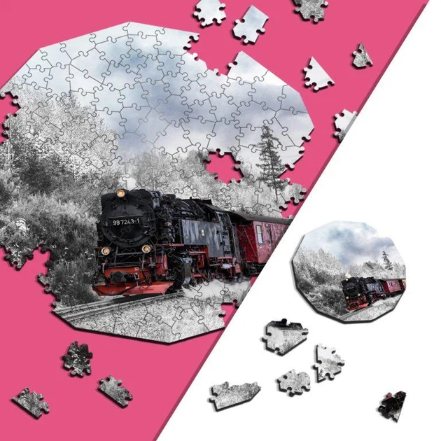 Дерев’яний Пазл The Gravix “Зимовий Поїзд”, коло, розмір 570х570 мм, 366 деталей