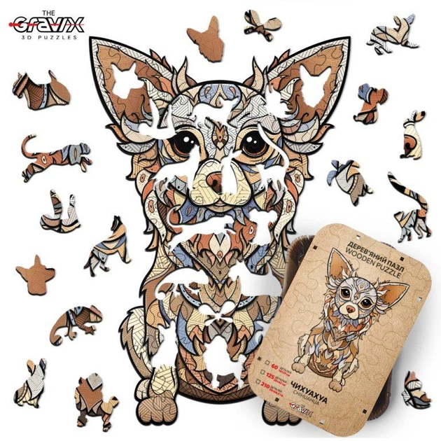 Дерев’яний Пазл The Gravix “Чіхуахуа Фігурний” розмір 390х585 мм, 210 деталей