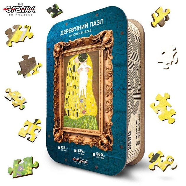 Дерев’яний Пазл The Gravix “Котячий поцілунок у стилі Клімту”, розмір 580х380 мм, 560 деталей