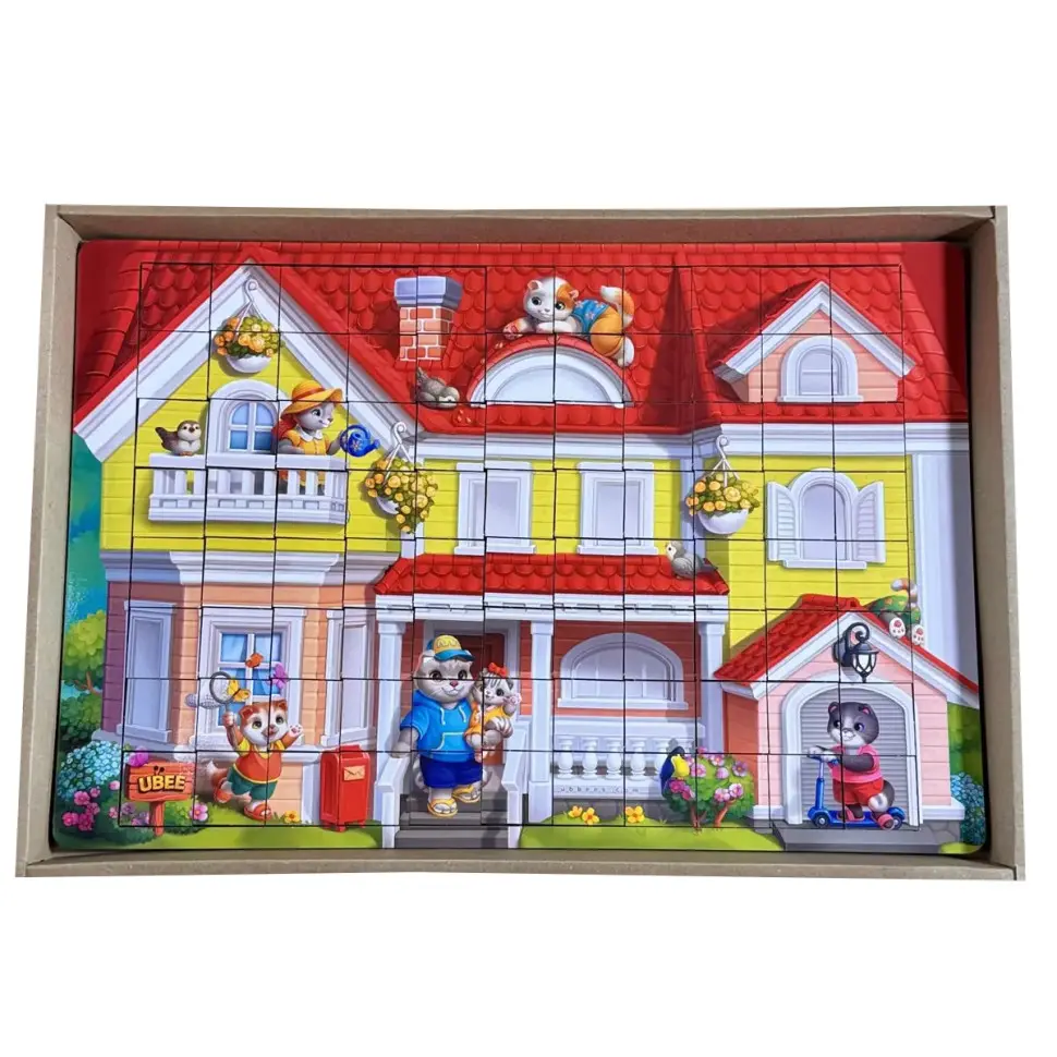 Дерев'яний пазл-вкладиш "Котячий будинок пазл літній" (ПСД273) PSD273