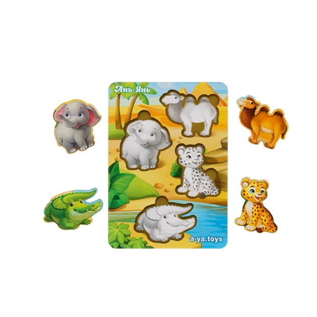 Дерев'яний пазл-вкладиш "Тварини Африки-2" Ubumblebees (ПСФ060) PSF060 фон із підказкою