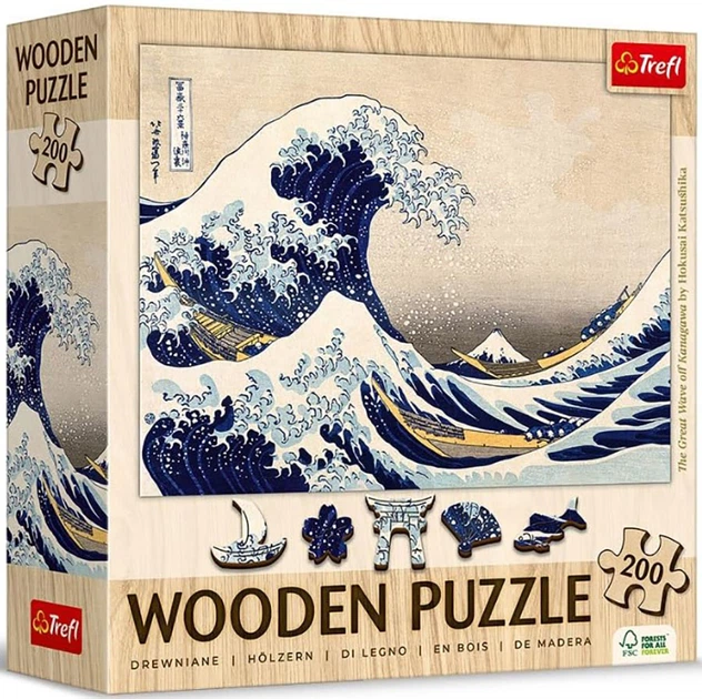 Пазли Trefl дерев'яні - Кацусіка Хокусай. Під хвилею Канаґавського моря / Bridgeman / 200 елементів (20250)