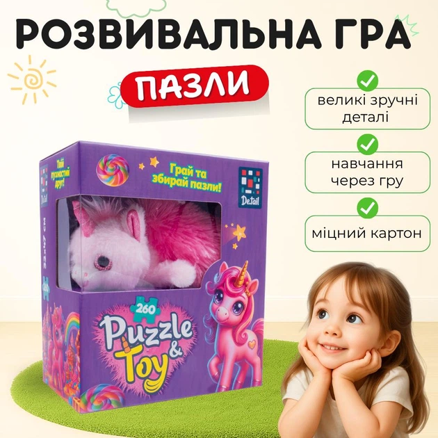 Пазли De.tail. Рожевий єдиноріг 260 деталей DT200-10 - захоплива творча гра для дітей