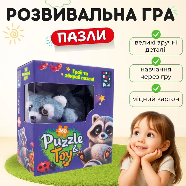 Пазли De.tail. Єнотик 260 деталей DT200-09 - творчий комплект для дітей