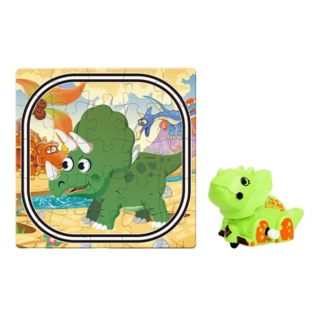 Розвиваюча іграшка заводна Трек пазл з динозавром Dino Puzzle Tracks Трицератопс