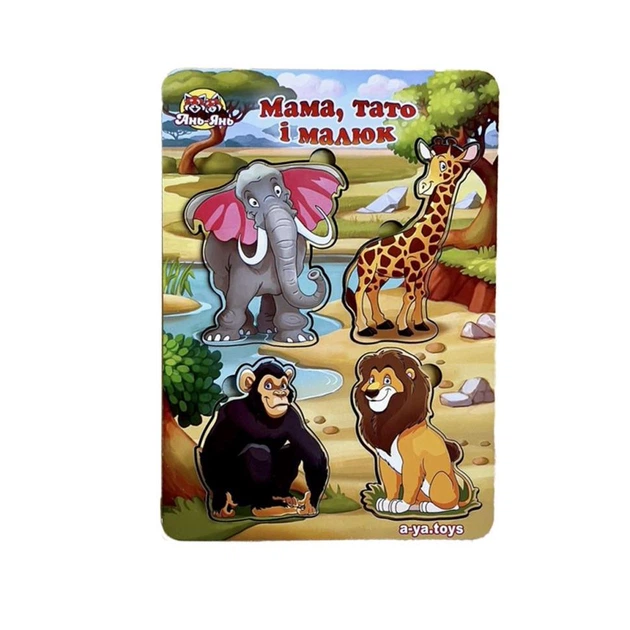 Дерев'яний пазл-вкладиш "Сім'я. Тварини Африки" Ubumblebees (ПСФ022) PSF022 більш-менш