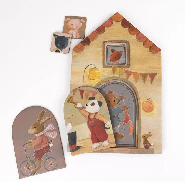 Дерев'яний пазл-вкладиш Котячий дім UBEE ПСД249