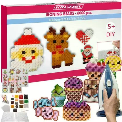 Великий набір термомозаїки KRUZZEL СР22424, намистини прасувальні, 6000 намистин 13 різних кольорів та різноманітними аксесу